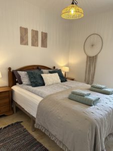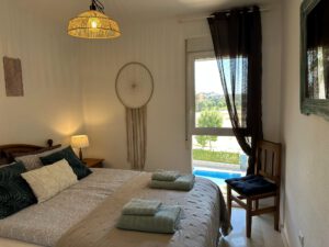 • Dormitorio principal con cama de matrimonio, baño en suite y acceso directo a la terraza.