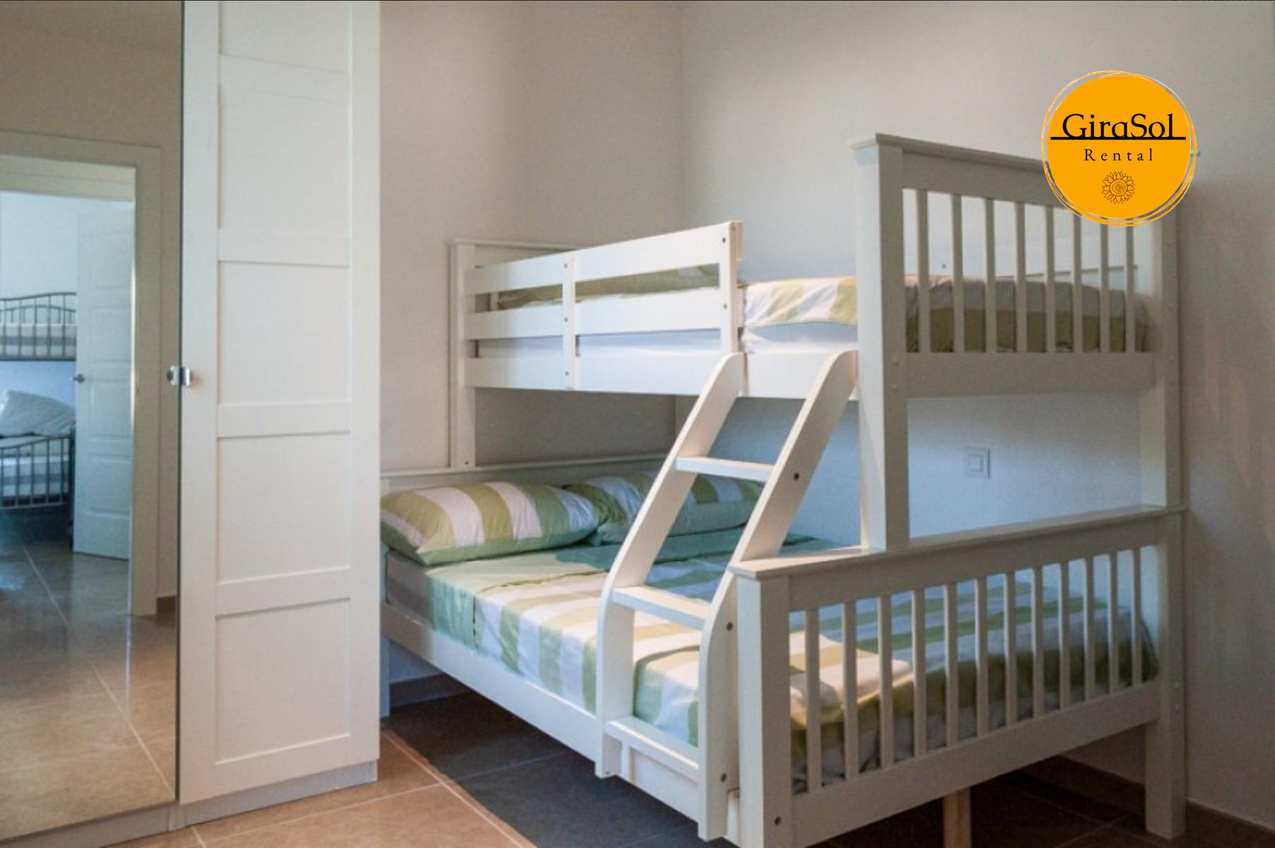 Lux Albir 103 es un apartamento moderno y prácticamente nuevo, decorado con un estilo actual y elegante. Ofrece 3 dormitorios: uno con cama de matrimonio, otro con literas para 3 personas, y un tercer dormitorio con dos literas con capacidad para 4 personas, ideal para familias grandes o grupos. Dispone además de 2 baños completos, una bonita cocina abierta y un salón luminoso con acceso directo a una gran zona exterior privada frente a la piscina.